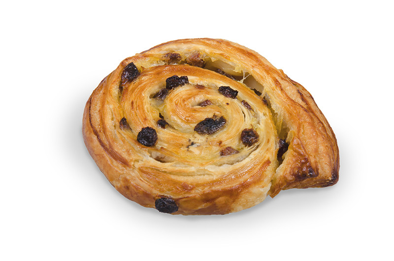 Pain au raisin roll dough 100g: Mega croissant flour, Butter (Fermented butter with lactic acid bacteria), Water, Sugar, Live yeast, Viennoise improving, Salt, Annatto colouring powder, Raisin cream unit: water, sultana small raisins, unheated custard cream